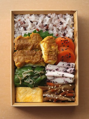 本日の弁当: 豆のカレー粉炒め → 秋茄子の辛子漬け → 豆もやしのナムル ししとうの素揚げ → パプリカの浅漬け 芽···